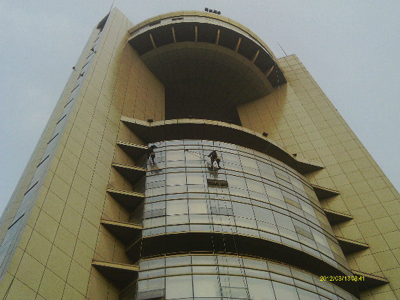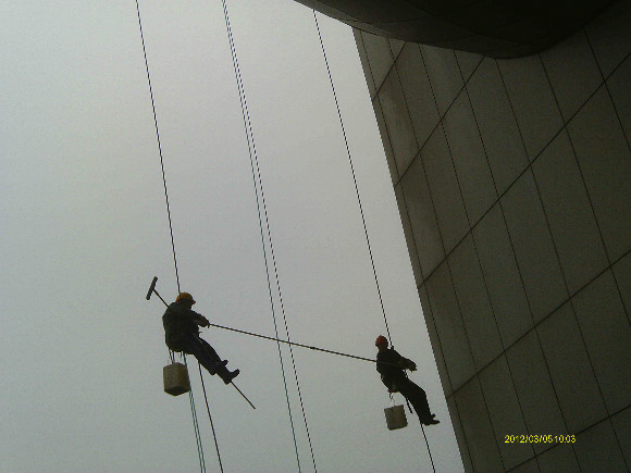 高層外墻清潔、高層玻璃幕清潔、高層外墻粉刷、高空外墻廣告安裝。因為高層外墻存在著危險性和復雜性, 所以這項工作是有著相當程度的科學性和專業性。